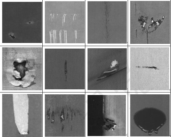將工業線陣CCD 相機架設在鋁箔上下表面,采用高亮 LED 線性聚光冷光源將材料表面照亮,通過編碼器觸發相機進行在線掃描式拍攝。高速圖像處理系統實時獲取表面圖像,智能圖像算法識別表面硌痕、油斑、污漬、擦傷、條紋、氣泡、夾雜等瑕疵。并利用信號控制系統做出相應反饋。缺陷記錄存儲于數據庫中以供回查。
