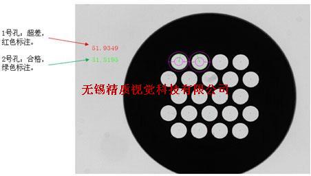 1、檢測目標:對產品上的孔洞進行尺寸測量,其中標準孔徑大小為51.85,公差正負0.05。kyS機器視覺檢測設備_CCD視覺檢測_外觀缺陷檢測系統_精質視覺