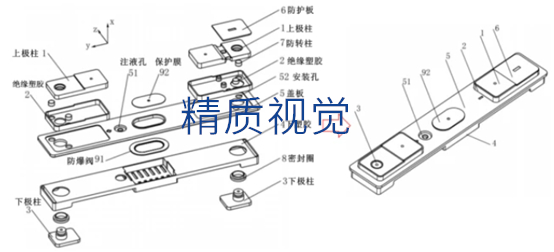 動力電池普遍采用的是方形硬殼結構,主要組成部件包括:頂蓋,殼體,正極板、負極板、隔膜組成的疊片或者卷繞,絕緣件,安全組件等。通常采用鋁殼,方形鋁殼電池占動力電池的比重約為90%,而動力電池鋁殼需要進行焊接封裝來保護內部電極結構和防止電解液的滲漏。目前方形電池鋁殼的焊接封裝主要采用激光焊接的方式,在方形電池鋁殼焊接封裝工藝中,影響焊接質量的因素有很多,為此需要對方殼電池頂蓋表面進行頂蓋外觀檢測。